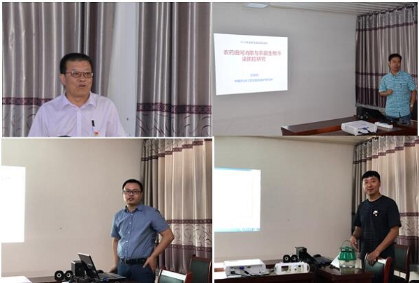 在绿色防控技术集成试验示范基地,党员同志认真参观了昆虫天敌展示馆,深入了解了我国未来设施农业和绿色有机农业发展趋势,见证了我所多个科研团队的绿色防控技术成果在基地转化落地及实际成效。基地负责任人国长军副总经理介绍了基地的历史及发展概况;邱德文福所长和李广悦博士介绍了绿色防控基地成立背景、发展现状以及未来规划;刘新刚研究员做了题为“农田污染防控及农药田间消散研究”的报告,概要介绍了我国农田面源污染研究现状及控制策略,并重点讲解了农药高级风险评估技术农药田间消散试验(TFD)的开展情况;梅向东副研究员做“化学调控昆虫行为绿色防控技术”报告,介绍了盲蝽、铜绿丽金龟、小菜蛾、甘蓝夜蛾、八字地老虎、银锭夜蛾、陌夜蛾和咖啡豆象信息素的研发及在基地防控技术示范效果。参观和报告结束后,党员同志畅谈了对绿色防控技术的心得体会,结合目前绿色防控技术的发展趋势,针对绿色防控中存在的问题提出了自己的见解。大家纷纷表示:作为植保人,要不忘初心,充分发挥植保所科研国家队的优势,积极进行植保科技创新,促进科研成果转化落地;切实将习总书记“三农”思想落到实处,推进绿色植保技术的集成与示范,为服务“三农”和乡村振兴贡献自己的力量。