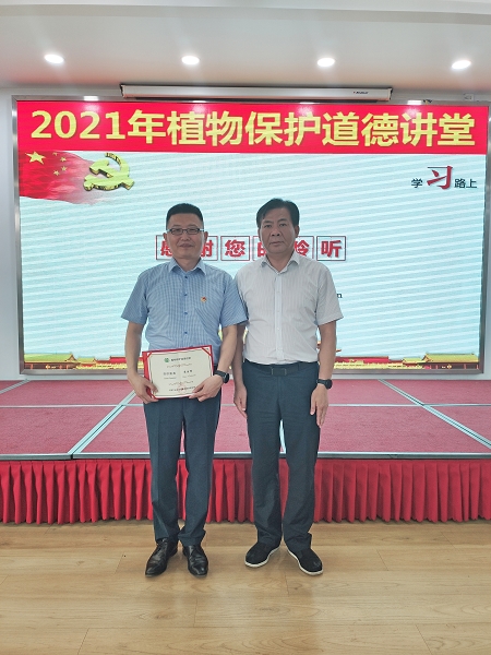 最后,罗长富书记代表植保所向秦国伟副院长颁发了植保道德讲堂演讲嘉宾证书,并合影留念。