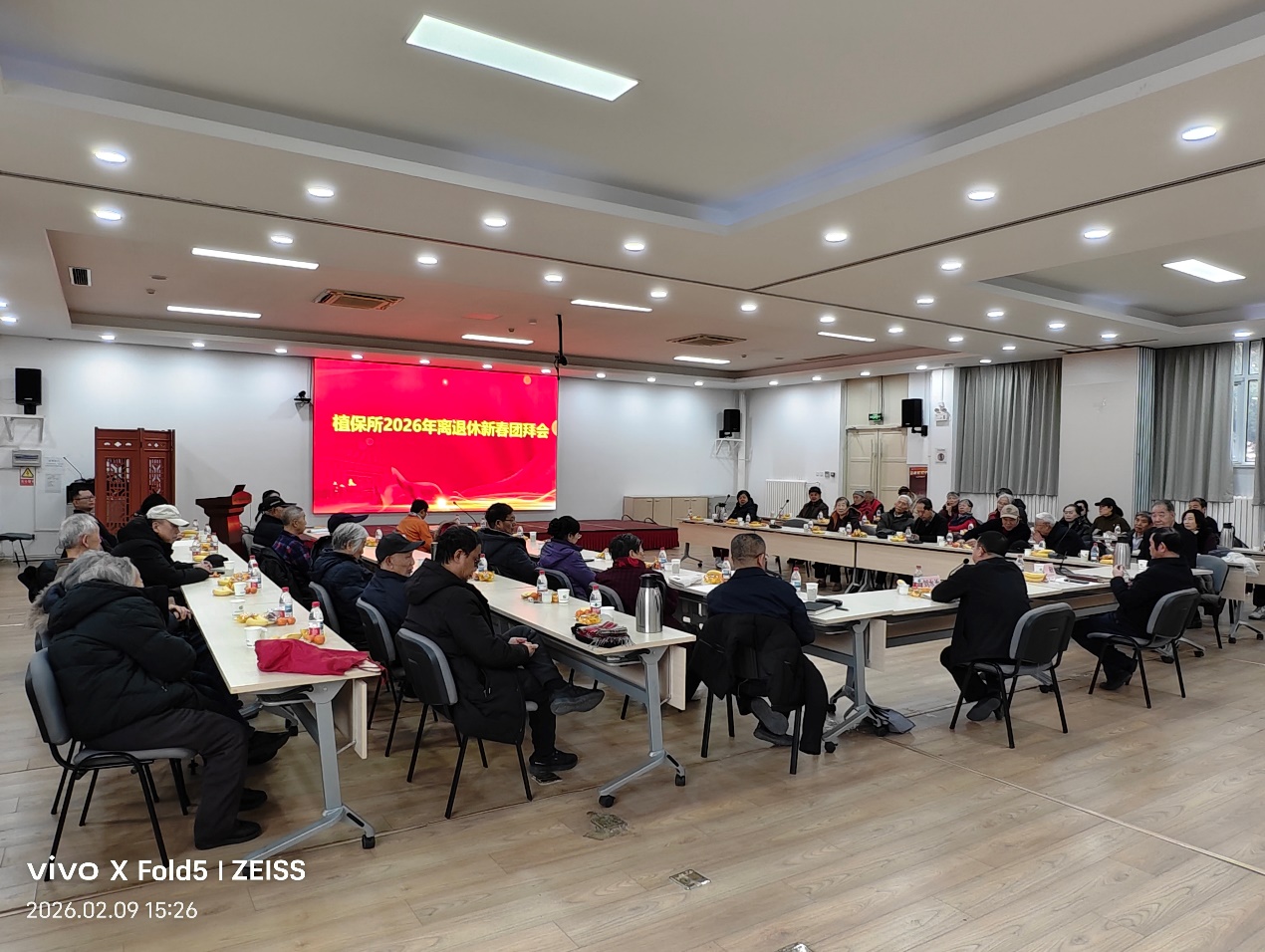 马启新程,辞旧迎新,2月9日下午,植保所召开2026年退休职工新春团拜会。副所长、党委委员陈昶,纪委书记刘水长,相关管理部门负责人及退休职工欢聚一堂,共贺新春佳节,共绘发展蓝图。刘水长主持团拜会。
