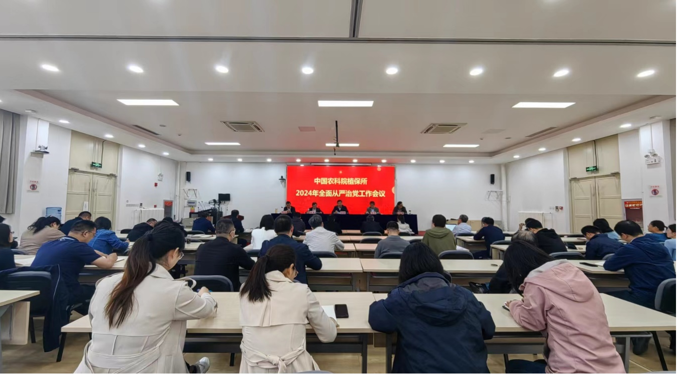 4月16日,植保所召开2024年全面从严治党工作会议,深入学习习近平总书记关于党的自我革命的重要思想,认真落实部、院全面从严治党工作会议精神,明确2024年重点任务,深入推进全面从严治党,动员部署党纪学习教育工作。所长、党委副书记陆宴辉主持会议并讲话。