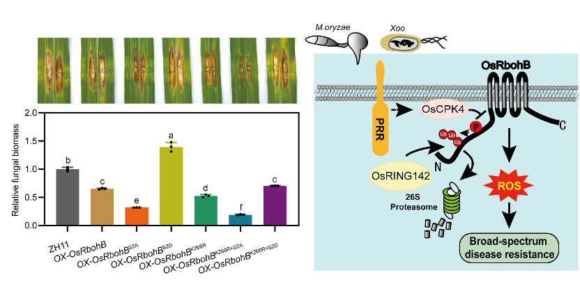 IPPCAAS Unveils New Mechanism of Phosphorylation and Ubiquitination Synergistically Regulating the Homeostasis of OsRbohB to Modulate Rice Broad-Spectrum Resistance