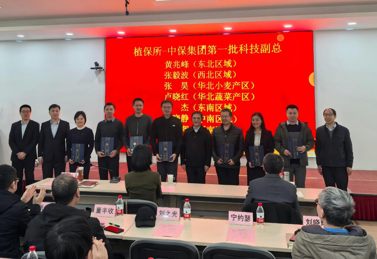 陈昶强调,植保所将深入贯彻落实二十届四中全会精神,积极响应习近平总书记对“三农”工作的重要指示,全力推进植保技术的落地应用。他指出,为企业人员颁发“低职高聘”聘书,既是对企业人员的认可与激励,也有助于充分调动聘用人员的积极性,为科技创新和成果转化提供更加有力的支撑与服务。通过选派“科技副总”,推动科研人员深入一线、倾听产业需求,在服务产业过程中锻炼成长,助力培育扎根产业的顶尖科学家。陈昶表示,在科企融合方面,要坚持角色互补、优势协同,积极探索植保所科技人才与中保集团市场资源深度融合的有效路径,实现在融合中创新、在创新中突破,持续为中保集团高质量发展注入科技动力。