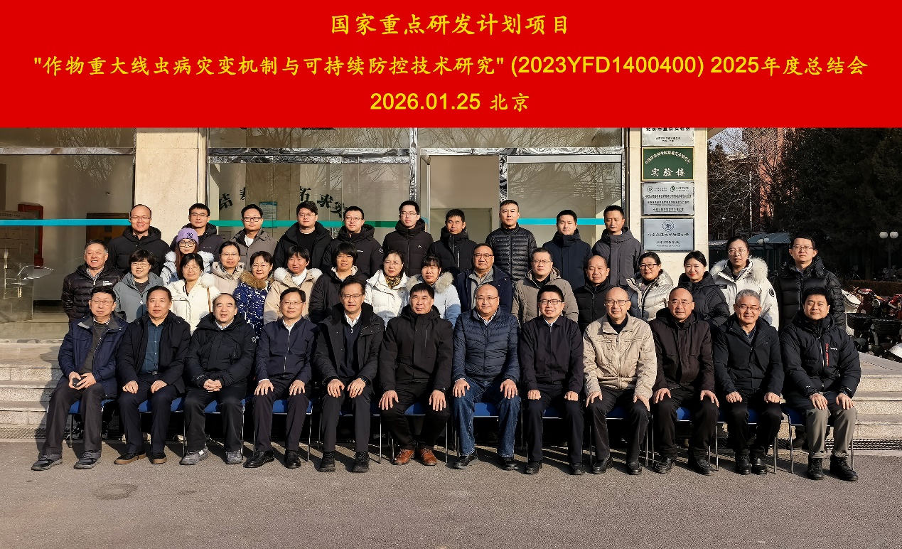 1月24-25日,植保所主持的“十四五”国家重点研发计划“作物重大线虫病灾变机制与可持续防控技术研究”(2023YFD1400400)项目2025年度总结会在北京顺利召开。本次会议由中国农科院植保所主办,中国农科院蔬菜花卉所承办。农业农村部种植业管理司二级巡视员王建强、科技发展中心郑戈总农艺师和副处长檀覃、中国农科院蔬菜花卉所副所长张圣平、中国农科院植保所副所长陈捷胤等主管部门与单位的领导莅临指导。项目咨询专家华南农业大学廖金铃教授、安徽省农业科学院副院长戚仁德、浙江大学郑经武教授和青岛农业大学植物医学学院副院长赵洪海到会指导。来自全国10所高校和科研院所的课题负责人、研究骨干及专家学者共计70余人齐聚一堂,系统总结项目进展,深入研讨下一阶段工作重点。