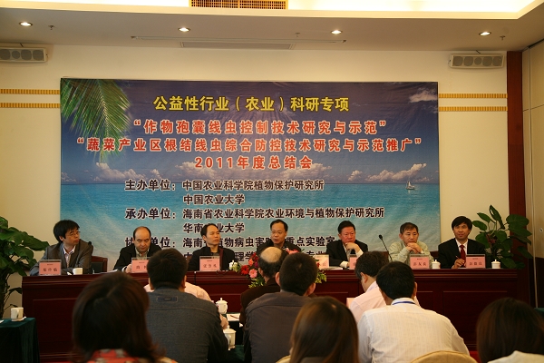 公益性行业(农业)科研专项“作物孢囊线虫病控制技术研究与示范 200903040”2011年度研究工作总结和交流会议于2011年12月9日至11日在海南省海口市胜利召开。会议由中国农科院植保所主办,海南省农科院农业环境与植物保护研究所和华南农业大学承办,海南省植物病虫害防控重点实验室和中国植物病理学会植物线虫专业委员会协办。农业部科教司产业技术处张国良处长、中国农科院植保所张步江书记、海南省农科院张志礼副院长、中国农业大学农学与生物技术学院院长彭友良教授、中国农科院植保所科研处郑传临处长、项目咨询专家张友军研究员、高希武教授、高丙利研究员出席了会议,项目首席专家彭德良研究员及项目执行专家组和技术骨干共80余人参加了会议。 会议由中国农科院植保所科研处郑传临处长主持,海南省农科院张志礼副院长在至欢迎词中指出海南省长夏无冬,病虫害发生种类多,瓜菜种植面积大,有利于作物孢囊线虫、蔬菜根结线虫、香蕉穿孔线虫三大线虫的发生为害。我所张步江书记在讲话中表示,对于作物孢囊线虫病的防治工作,农业部领导十分重视、决策得当,植保所作为项目主持单位,一定尽全力保证项目的顺利进行。中国农业大学彭友良教授要求各单位充分开展交流与合作,努力创制轻简化实用技术,为农民增收创造条件。农业部科教司产业技术处张国良处长在开幕式上就公益性(农业)行业科技的项目定位、运行机制、团队建设以及人才培养和社会影响等发表了重要讲话,对该项目自2009年启动以来所取得的成绩及首席科学家认真负责及专家们的严谨的工作态度给予了充分的肯定,指出这个项目是农业行业科技项目中执行最好的项目之一;同时指出要明确行业科技的定位,行业科技不是基础研究、也不是推广研究,而是应用基础研究.。应该针对生产中的一个问题进行深入研究,以项目为平台联合协作、相互学习、共同提高,深入开展孢囊线虫的致病规律、遗传变异水平等方面的研究,重点搞好应用技术研究与轻简化技术的试验示范,加强孢囊线虫的早期诊断技术、安全高效的综合防治技术研究;在产业中留痕迹,给后人以启迪,在科研上应有明确可行的技术路线,适时申请专利,建立示范基地,为生产实际提供良好的物化产品和技术,形成轻简化实用技术,切实解决生产实际问题;让推广部门看得见、让老百姓用得起。在项目执行过程中要注意团队的建设以及优秀的青年人才的培养,同时加强项目的国际影响力,促进国际交流与合作。 最终达到“科研上有亮点、产业上有贡献、团队上有发展、学术上有地位”的四大目标。 会议期间,中国农科院植保所、河北省农林科学院植保所、中国农业大学、南京农业大学、华中农业大学、河南农业大学、沈阳农业大学、黑龙江省农科院、华南农业大学、青海省农林科学院等29家参加单位分别汇报了其在2011年开展的小麦孢囊线虫、大豆孢囊线虫研究工作、所取得的重要进展、发表的文章以及2012年的工作计划。总结交流了2011年度在小麦孢囊线虫优势种类鉴定,发生动态和危害调查,致病型鉴定,产量损失评估,小麦种质资源抗性鉴定,致病基因克隆,快速检测与监测,农业防治技术研究,生物防治资源的挖掘,高效低毒化学农药的筛选及应用技术,控制技术的集成与示范等方面取得的阶段性进展,针对项目实施过程中出现的研究内容有重叠、研究方法和试验设计等方面存在的问题,与会专家开展了热烈讨论,充分交换了意见,提出了有效的解决方案。 总结会后,项目首席科学家彭德良主持召开了执行专家组2011年第二次会议,针对2011年研究工作中出现的问题集中讨论,交换意见。首席科学家彭德良研究员表达了喜忧参半的心情,高兴的是各单位研究内容丰富,全面;忧的是进展不一,亮点不突出。因此首席专家对2012年的工作进行了重新部署与调整,强调各个单位重新定位,明确任务,查漏补缺,突出重点,规范实施,以保证项目顺利进行。归纳总结轻简化实用技术,提出技术解决方案和应用技术,进行成果鉴定,完善试验示范区。要求各单位深入查找亮点、加快工作进度,重点搞好2012年度的试验示范工作。 此次会议的召开对明确项目定位,解决项目执行中出现的问题,促进项目今后的顺利进行发挥了十分积极的作用。与会专家表示,通过年度总结会议,各单位交流了先进的研究经验与方法、认识了自身存在的差距与不足,明确了来年的研究重点与奋斗目标,他们将精心策划、认真组织、踏实工作,为小麦、大豆产业与线虫学的发展做出贡献。