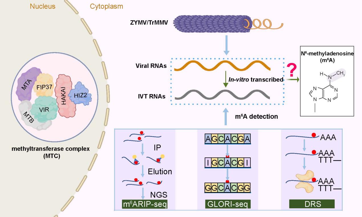 年青化王志平年青化近日,中国农业科学院植物保护研究所周雪平团队与北京市农林科学院李少芳团队联合在国际知名学术期刊Science Bulletin (IF=21.1)在线发表题为“Epi-transcriptome analysis reveals the lack of N6-methyladenosine modification in two RNA viruses infecting watermelon”的研究论文。该研究综合运用三种原理不同的m⁶A检测方法,揭示了侵染西瓜的两种细胞质复制型RNA病毒——瓜蒌斑驳花叶病毒(trichosanthes mottle mosaic virus, TrMMV)和西葫芦黄花叶病毒(zucchini yellow mosaic virus, ZYMV)的RNA中缺乏N⁶-甲基腺苷(m⁶A)修饰,为植物病毒表观转录组学研究提供了新见解。年青化
