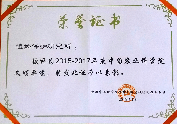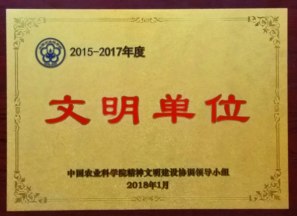 1月23日,中国农业科学院工作会议在京成功召开。会议隆重表彰了2015-2017年度中国农业科学院文明单位,我所获得了此项殊荣,周雪平所长上台领奖。这是所党委对党建工作和精神文明建设工作高度重视,党政群团齐抓共管,广大干部职工同创共建所取得的可喜成果,是院党组对我所近年来各方面工作的充分肯定。