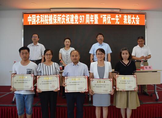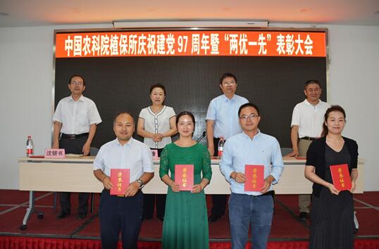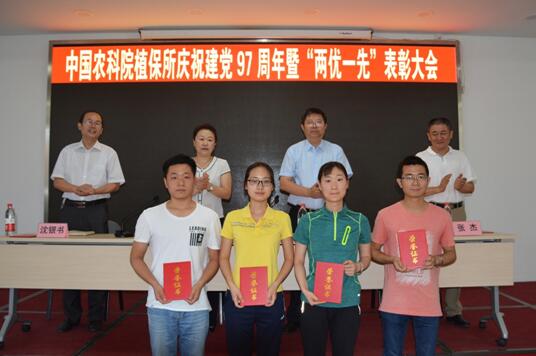 2018年6月28日上午植保所召开庆祝建党97周年大会。为充分发挥先进典型在促进农业科技创新中的引领、示范和带动作用,根据我所“两优一先”评选表彰工作总体部署,结合纪念大会,植保所组织召开2016-2017年度“两优一先”表彰会并举办2018年第一期植保道德讲堂。周雪平所长、李红康书记、邱德文副所长、张杰副所长、沈银书副所长、全体党员、在职职工、离退休职工、博士后和学生代表共计180余人参加会议。李红康书记主持会议。