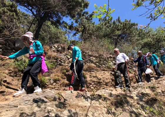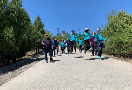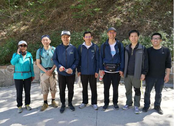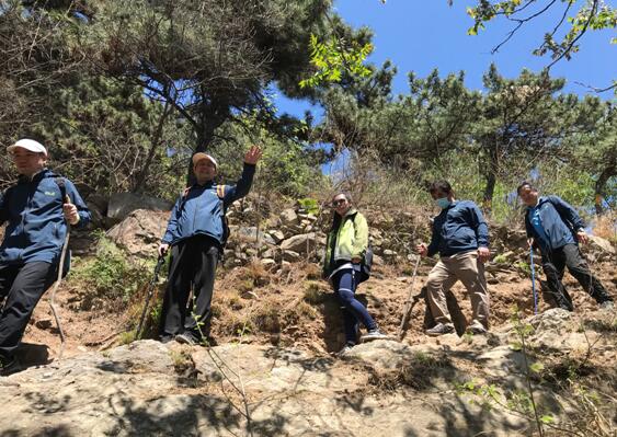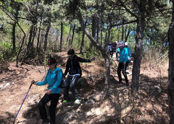 此次徒步以香山植物园南门为起点,路经四棵树、瞭望塔、挂甲塔、快活林、鬼笑石、八大处等景点,终点设在西山森林公园无名英雄广场,路线全长20多公里。当天天气多变,早上大风呼号、春寒料峭,中午晴空万里、烈日炎炎,但是大家斗志昂扬、边说边笑,丝毫不畏惧恶劣天气所带来的种种不利条件。领队的张刚应老师和芮昌辉老师一路飞奔,捆绑路条、为大家指明道路;青委会的各位委员分别在队伍的前中后部,组织大家奋力前行。徒步路线并不平坦,而是崎岖不平、起伏不断:刚开始的5公里中就碰到了连续3公里的大上坡,大家爬的气喘吁吁;之后又遇到了连续1公里的陡峭山路,许多老师双腿发抖;最后连续5公里的山路布满台阶,有些老师膝盖已经出现疼痛的症状,但是大家都咬牙坚持、互相鼓励。经历了7个半小时的行程后,共有70余名职工在下午4点之前抵达西山森林公园。