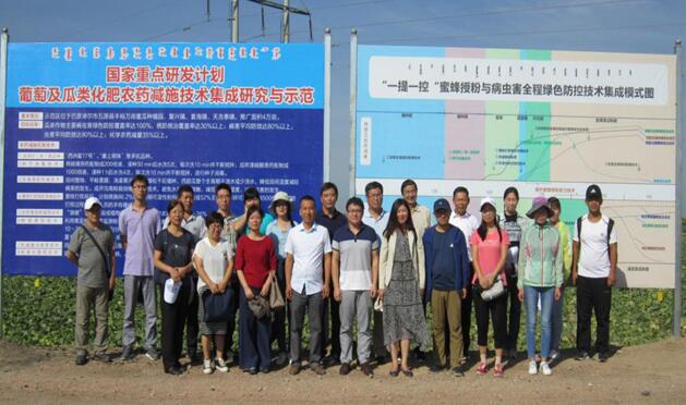 2018年8月14-15日,由中国农业科学院植物保护研究所和国家西甜瓜产业技术体系主办,吉林农业大学和内蒙古巴彦淖尔市植保植检站承办的国家重点研发计划项目“葡萄及瓜类化肥农药减施增效技术集成研究与示范(2018YFD0201300)”现场观摩会在内蒙古巴彦淖尔市召开。