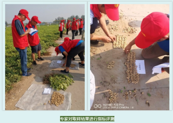 观摩会上对花生进行了产量评价,在现场测评专家组的指导跟踪下,现场对六个处理区随机五点取样,并对单果数、双仁果数、无效果数、病果数、虫果数及产量等指标进行评测,中保方案增产效果较常规处理及空白对比明显,得到参会专家的一致认可和好评。