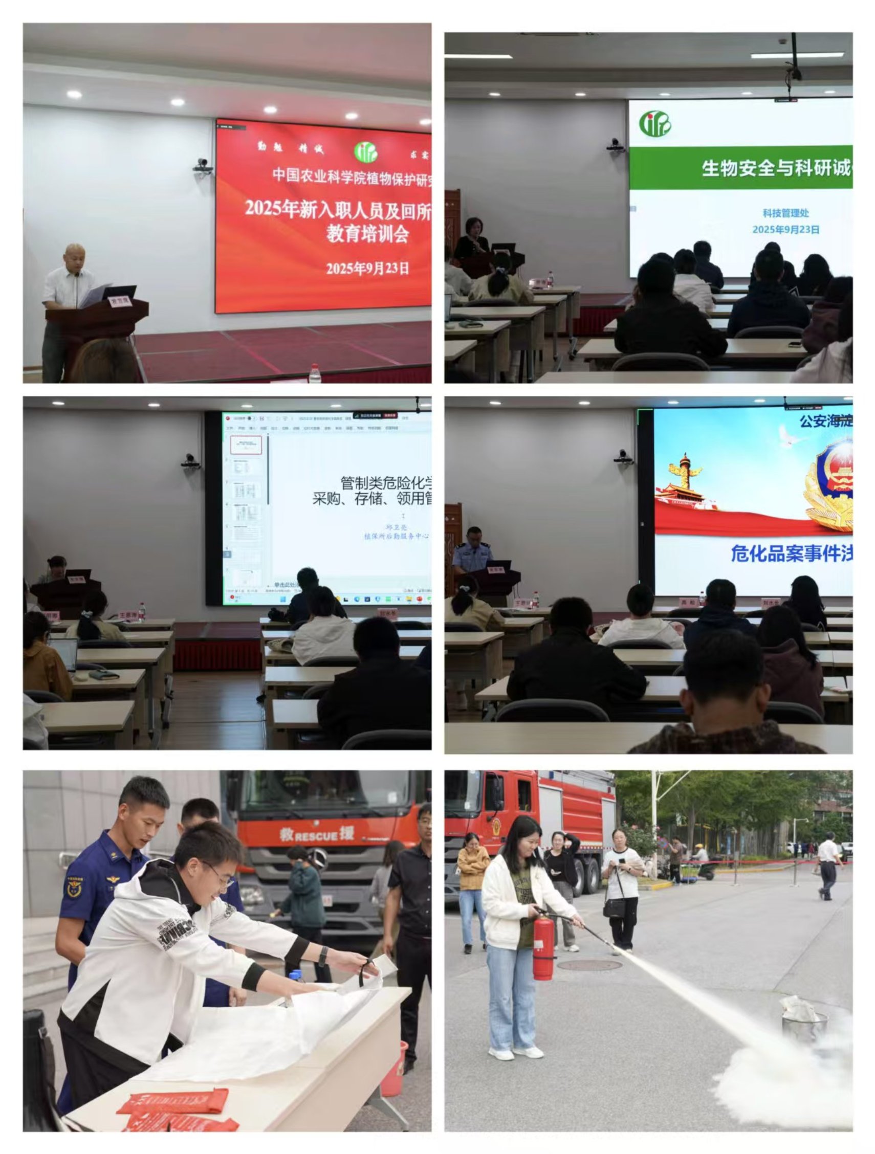 9月23日,植保所举办2025年新入职人员及回所研究生教育培训会,围绕所情所史、科研诚信、生物安全、校园安全、实验室安全、消防安全等方面进行全方位教育和培训。纪委书记刘水长、相关职能部门负责人、各创新中心负责人出席会议。会议由研究生工作处处长王恩涛主持。培训以线上线下相结合的方式进行,2025年新入职职工、进站博士后及2024级研究生和客座生等近200人参加了培训。