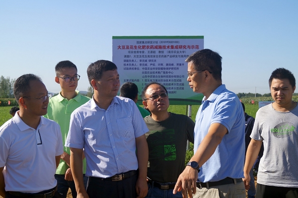 2019年8月28-29日,李克斌研究员主持的国家重点研发计划课题“大豆花生高效安全农药新产品研发与施用技术(2018YFD0201002)”在山东省邹城市成功举办现场示范观摩交流会。全国农业技术推广服务中心赵中华研究员,中国农科院植保所陆宴辉副所长、张礼生处长,山东省植物保护总站关秀敏科长、山东省农业科学院花生研究所迟玉成研究员、邹城市农业农村局张弘局长,项目首席南京农业大学王源超教授、课题负责人李克斌研究员,课题特邀咨询专家华中农业大学姜道宏教授、安徽省农业科学院植物保护与农产品质量安全研究所苏卫华研究员、中国农业科学院蔬菜花卉研究所郭巍教授等出席此次活动。