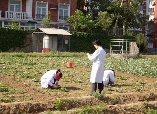 当年农场中,有一个天然气小屋,旁边就是大片的实验地,科研人员正在进行实验调查。